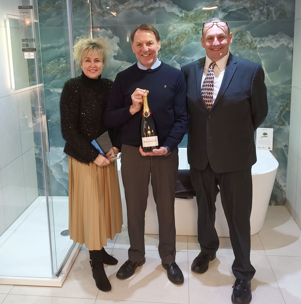 Chris and Sue Speck are pictured with Phoenix Business Development Manager Cal McCarthy here at Beaman’s Bathroom. They display a superb range of Phoenix bathroom products including Shower Enclosures and Baths. They are looking forward to ordering more products soon to show to their customers. The Phoenix Brand is proving to be a great success for them. Congratulations to the team.