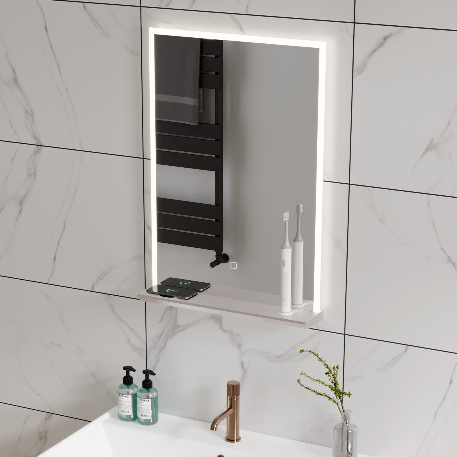 The wireless Phone charging pad on the Power Mirror will work with all recent models of phone. Please check your phone specification for wireless charging compatibility. The toothbrush charger on the Power Mirror is compatible with Braun Oral-B Toothbrushes with the following suitable charging models: